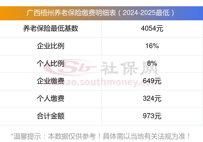 据新社通app显示,广西梧州养老保险缴费基数2024-2025年最新标准如下: