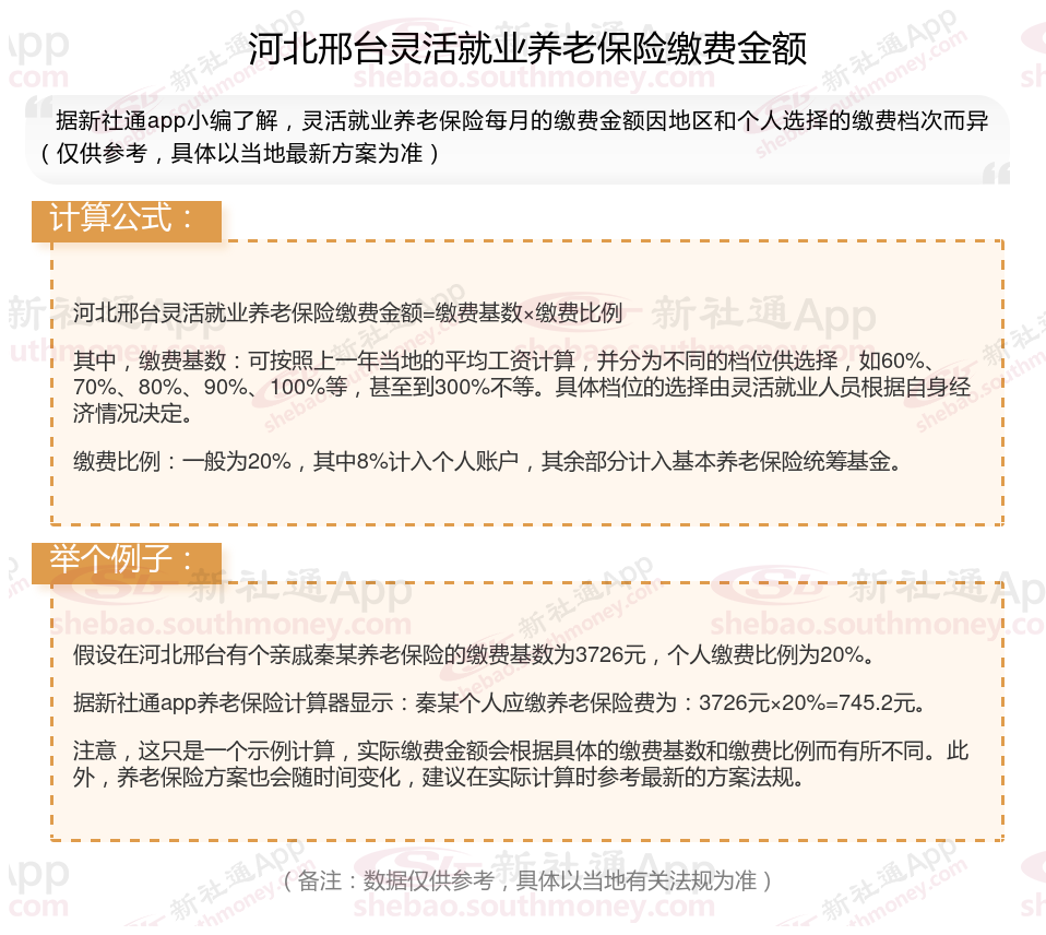 据新社通app显示,2024-2025年河北邢台灵活就业养老保险的缴费标准:
