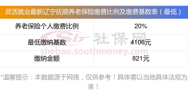 据新社通app显示,2024-2025年辽宁抚顺灵活就业人员养老保险的缴费标准是根据缴费基数来确定的: