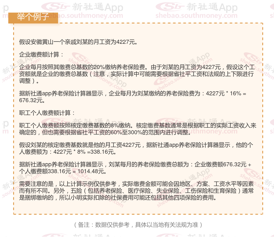 安徽黄山养老保险一个月要交多少钱?举例说明