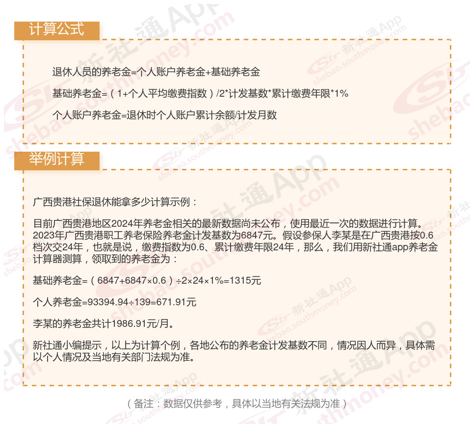 广西贵港养老金计算公式2024年最新计算器 社保退休能领多少钱?