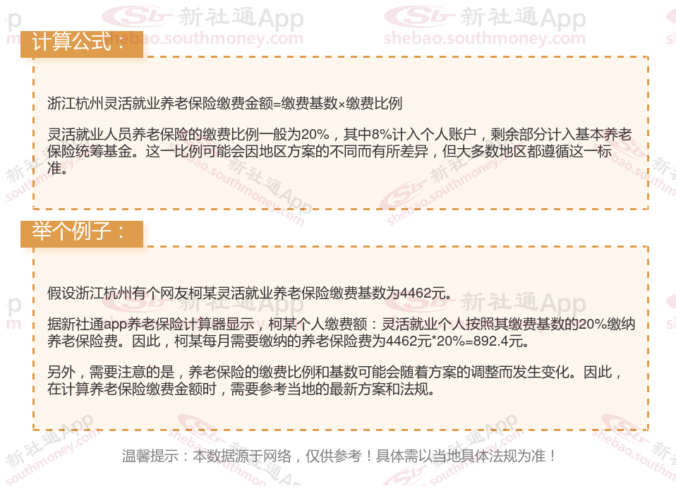 据新社通app显示,2024-2025年浙江杭州灵活就业养老保险的缴费标准根据不同的参保对象有所差异。
