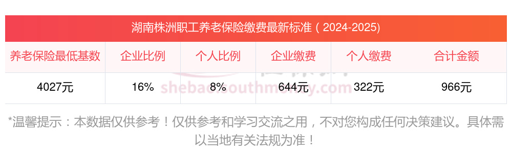 假设湖南株洲的养老保险缴费基数为4027元,个人按照8%的比例缴纳养老保险费用,企业按照16%的比例缴纳。则该职工的养老保险缴费计算如下: