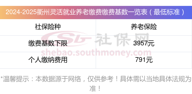 衢州灵活就业人员基本养老保险缴费基数暂按不低于3957元;