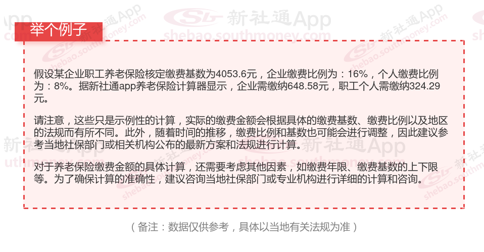 缴费基数下限暂按不低于4053.6元/月执行。按照单位16%+个人8%的缴费费率,单位和个人养老保险缴费金额分别不低于648.58元/月、不低于324.29元/月。