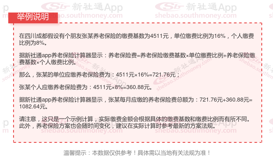据新社通app显示,四川成都2024-2025企业职工养老保险的缴费基数为:4511元。