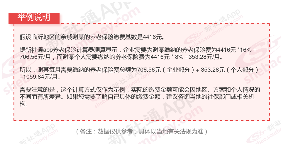 临沂养老保险最低缴费基数:4416元;