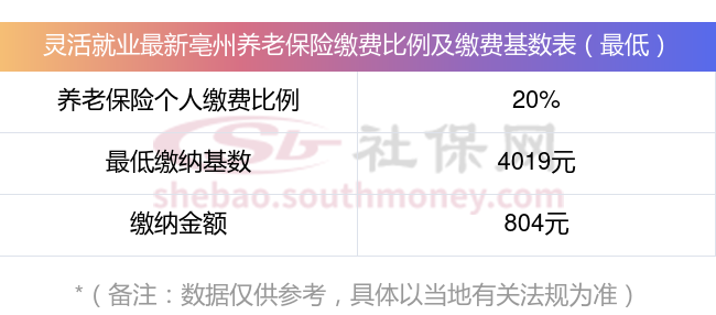 据新社通app小编了解,2024年的灵活就业社保缴费价格表因地区而异,不同城市有不同的缴费标准和方案。下面随新社通小编一起来看看亳州2024-2025灵活就业养老保险社保缴费价格表,灵活就业养老保险一个月多少钱的详情吧。