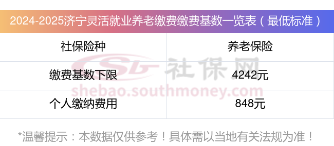据新社通app显示,济宁灵活就业养老缴费基数明细如下: