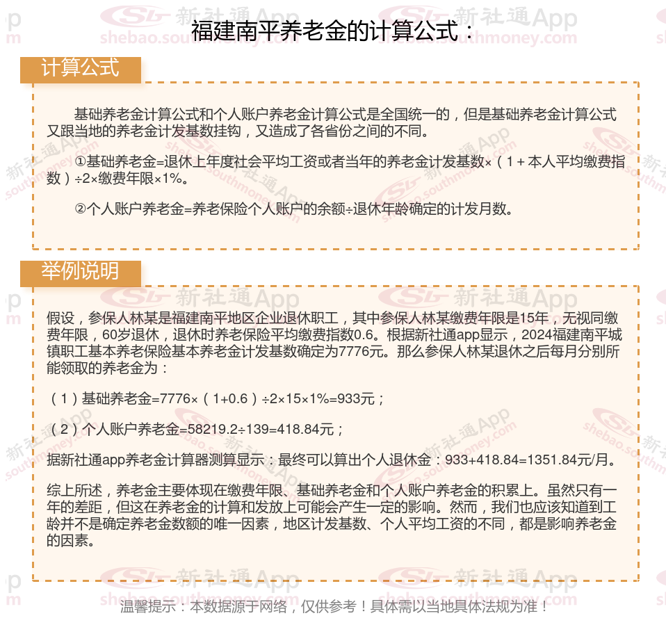 福建南平养老金计算公式2025年计算方法(在线计算器)