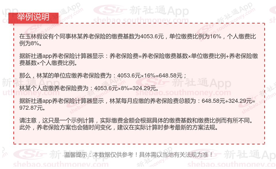 据新社通app显示,玉林养老保险缴费基数2024-2025年最新标准如下: