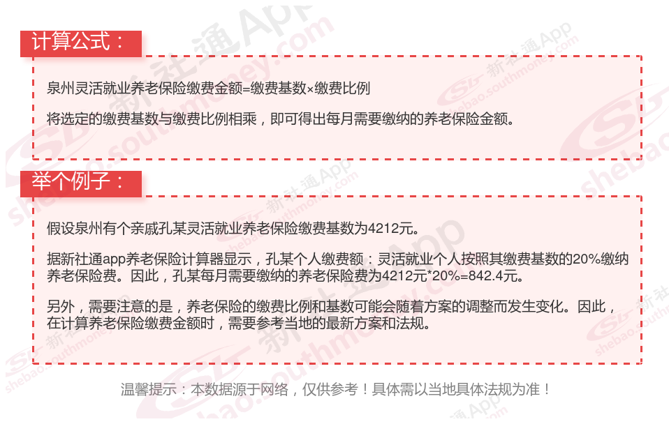 据新社通app显示,2024-2025年泉州灵活就业人员养老保险的缴费标准是根据缴费基数来确定的: