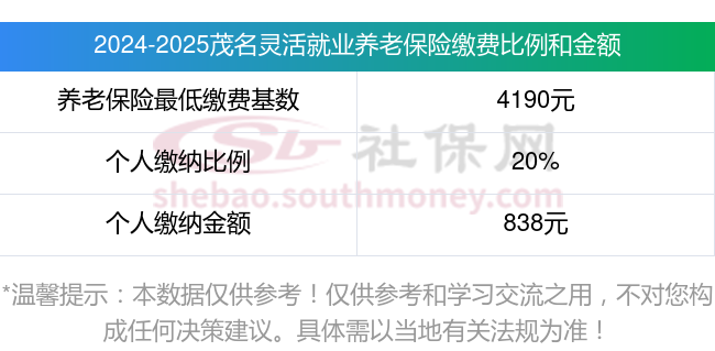 据新社通app显示,2024-2025年茂名灵活就业养老保险的缴费标准: