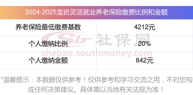 据新社通app显示,2024-2025年龙岩灵活就业人员养老保险的缴费标准是根据缴费基数来确定的: