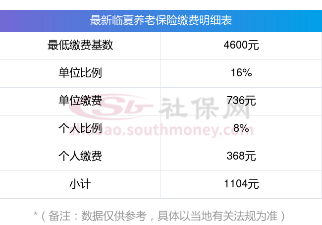 据新社通app获悉,临夏养老保险的缴费金额计算通常涉及缴费基数和缴费比例两个因素。以下是一个基于虚构数据的计算举例说明: