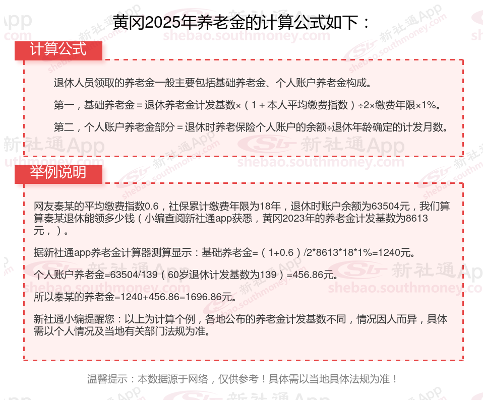 黄冈养老金计算公式2024年计算方法(在线计算器)