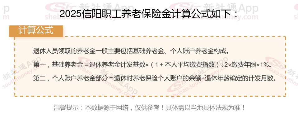 下面社保小编一起来看下,以信阳为例(不考虑过渡养老金):