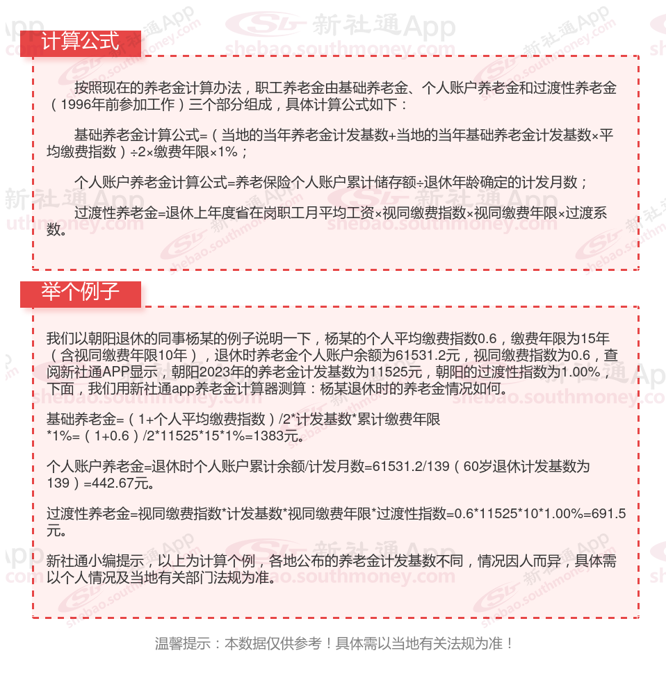 朝阳养老保险退休能领多少钱?(在线计算举例说明)