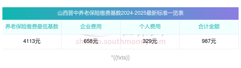 据新社通app显示,山西晋中职工养老保险最低缴费基数为:4113元;单位和个人的缴费比例分别为:16%、8%;