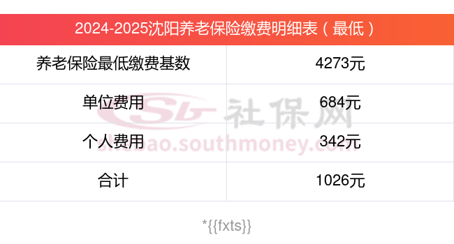 据新社通app显示,沈阳职工养老保险最低缴费基数为:4273元;单位和个人的缴费比例分别为:16%、8%;