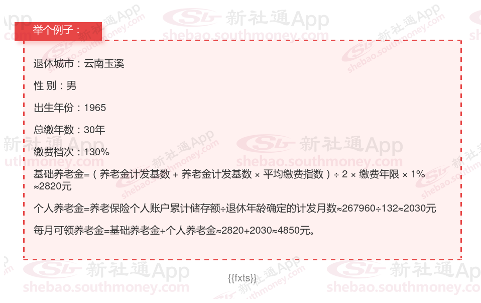 根据计算公式,下面随着新社通APP一起来看看,那么在云南玉溪交满30年退休金能领多少?