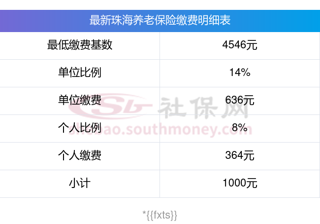 珠海假设某职工养老保险的缴费基数为4546元,单位缴费比例为14%,个人缴费比例为8%。