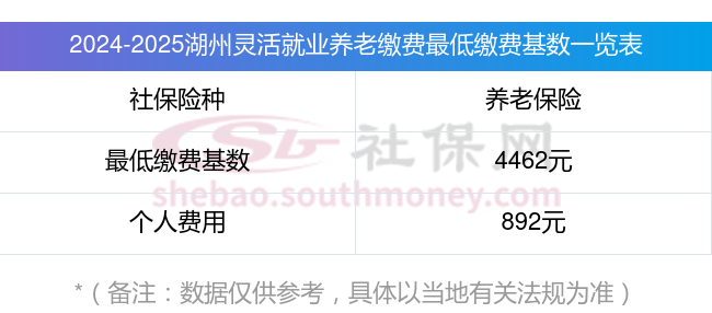 湖州灵活就业人员基本养老保险缴费基数暂按不低于4462元;