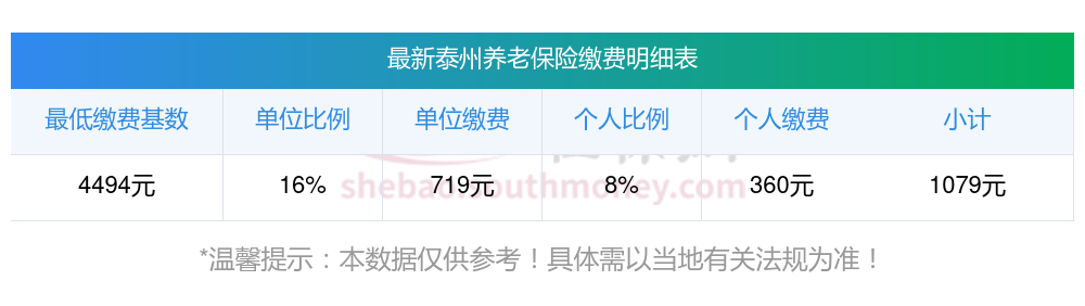 泰州养老保险缴费基数2023-2024年最新标准(最低)一个月要交多少钱?举例说明