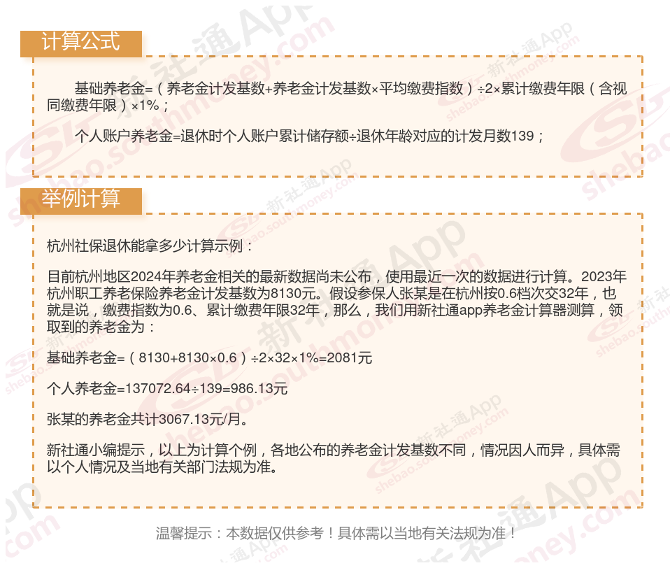 杭州社保养老保险交满能领多少钱?(在线计算举例说明)