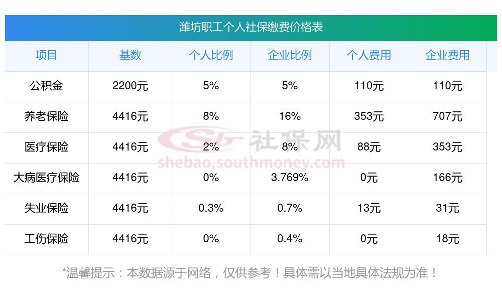 2025社保交多少钱?下表是2025年潍坊社保费用明细参考,新社通app-社保缴费查询工具提供的最新数据如下:
