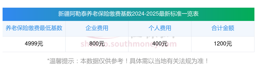 据新社通app显示,2024-2025年新疆阿勒泰职工养老保险的缴费标准是根据缴费基数来确定的: