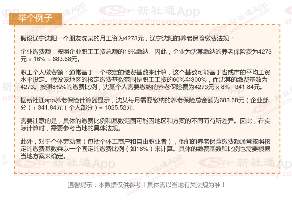 辽宁沈阳养老保险一个月要交多少钱?举例说明