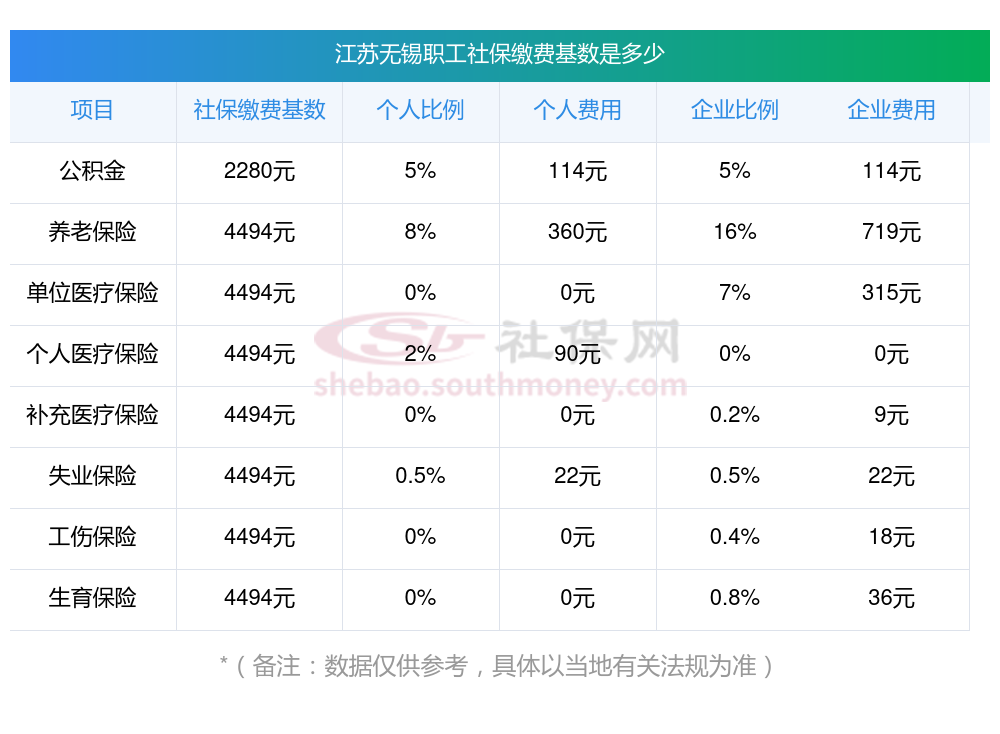 江苏无锡缴费社保比例一览 社保公司和个人各交多少?下表是2024-2025年江苏无锡社保费用明细参考,新社通app-社保缴费查询工具提供的最新数据如下: