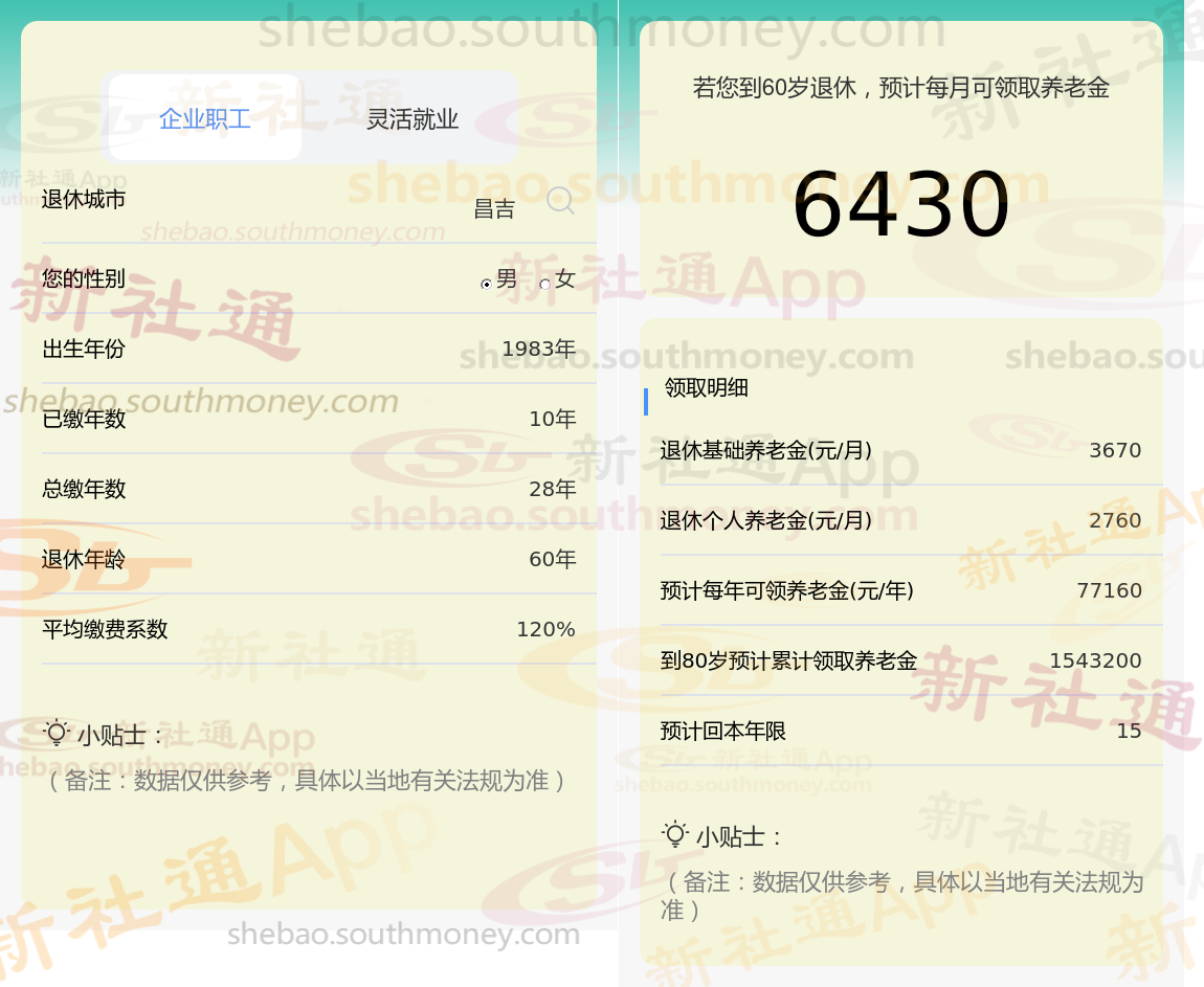 》点击新社通app养老金计算器,快算算你的养老金够不够花!