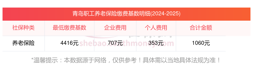 青岛养老保险缴费基数2023-2024年最新标准(最低)