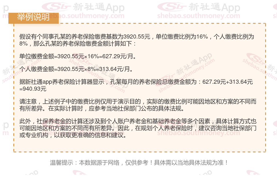 请注意,这只是一个示例计算,实际缴费金额会根据具体的缴费基数和缴费比例而有所不同。此外,养老保险方案也会随时间变化,建议在实际计算时参考最新的方案法规。》点击新社通app养老保险计算器,轻松测算你的养老保险缴纳金额!