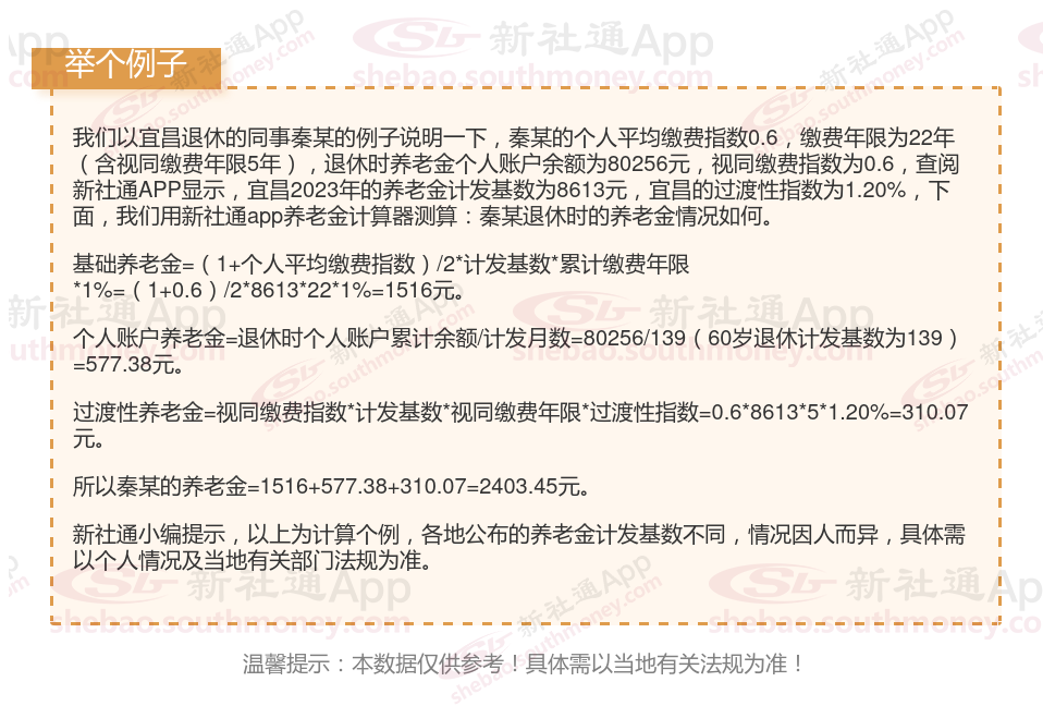 假设在宜昌有个邻居杨某养老保险的缴费基数为3659元,个人缴费比例为20%。