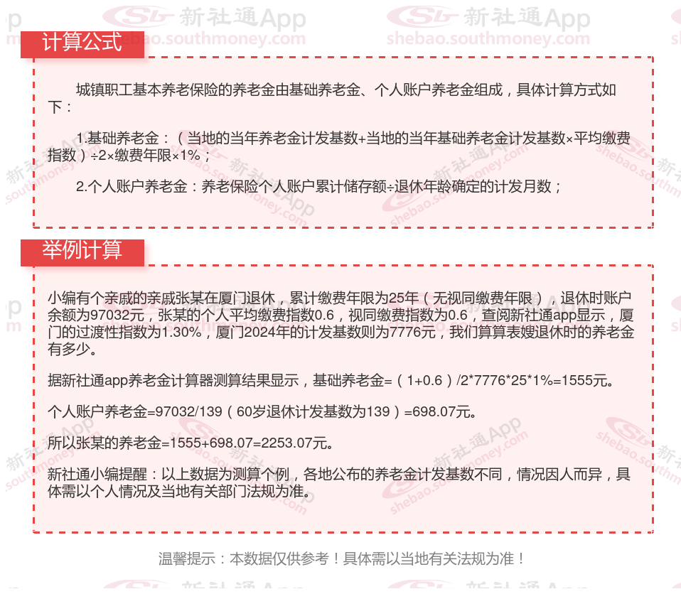 厦门社保退休能领多少钱?(在线计算举例说明)