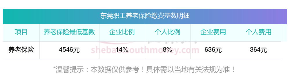 东莞养老保险缴费基数2023-2024年最新标准(最低)