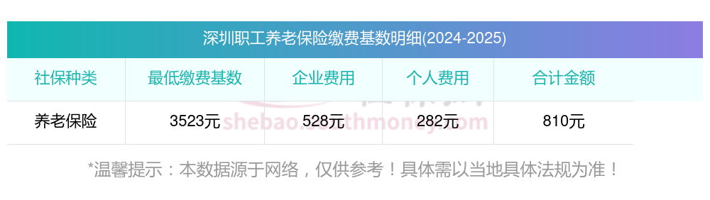 据新社通app显示,深圳养老保险缴费基数2024-2025年最新标准如下: