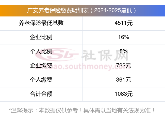 另外,需要注意的是,这些缴费标准可能会随着时间和方案的变化而调整。为了获取最新的广安职工养老保险缴费标准信息,建议查阅相关消息或咨询当地社保部门。