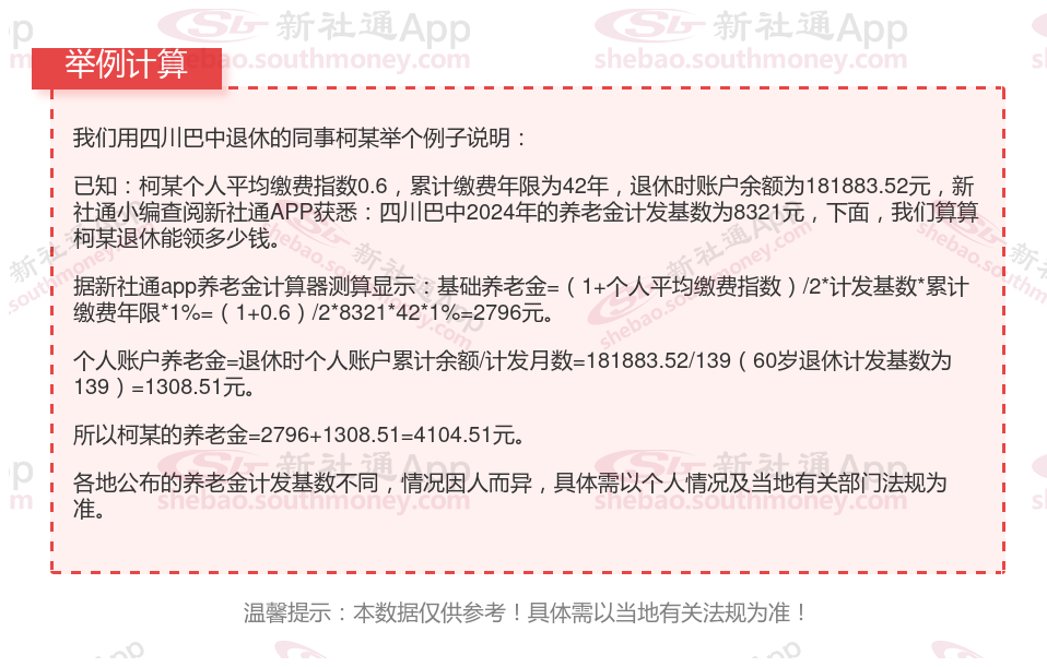 据新社通app显示,2024-2025年四川巴中灵活就业人员养老保险的缴费标准是根据缴费基数来确定的: