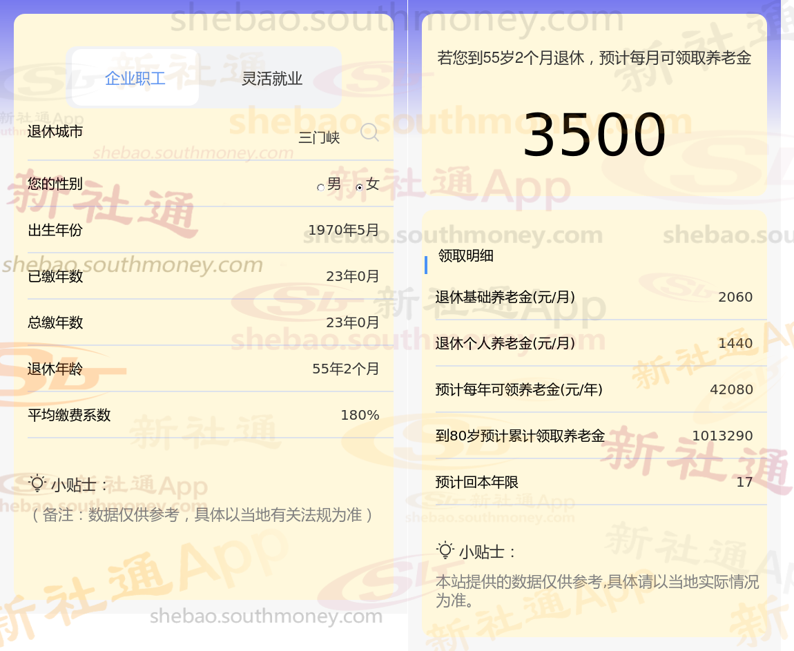 新社通app养老金计算器计算所得: