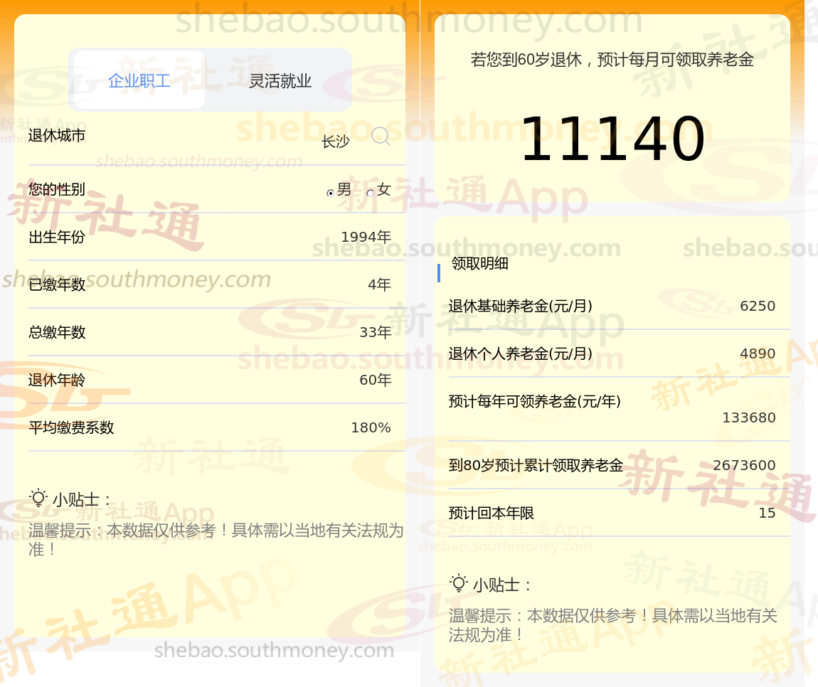 》点击新社通app养老金计算器,快算算你的养老金够不够花!