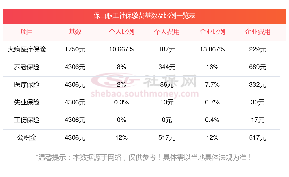 保山社保缴纳比例公司和个人按照以下方式计算?: