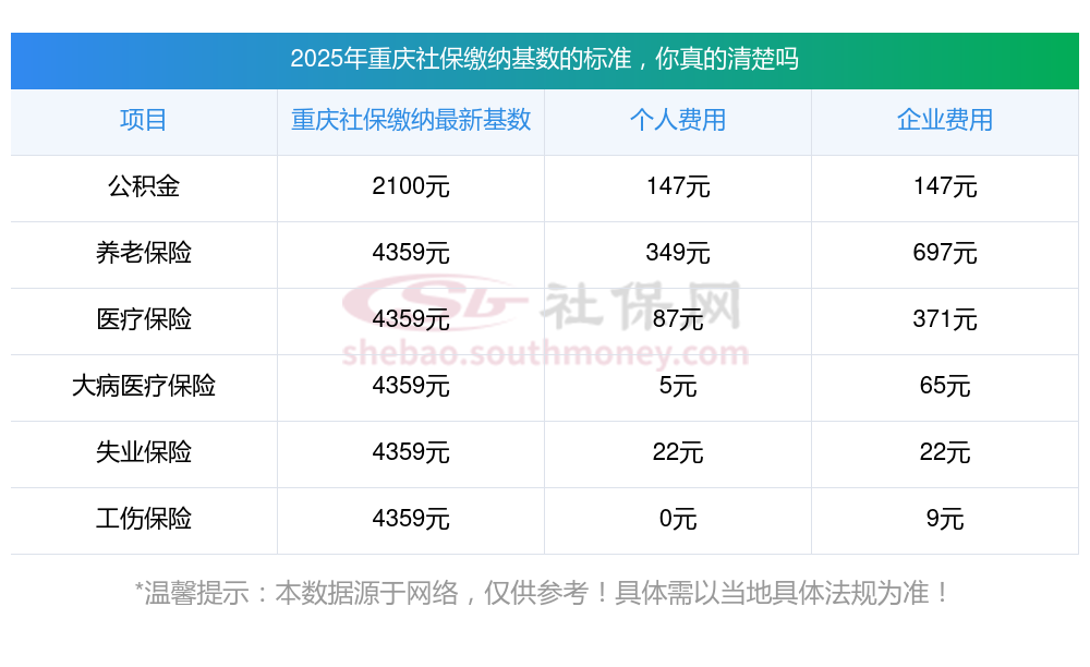 重庆社保缴纳情况是怎样的?一起和社保君一起来看看下面的明细表: