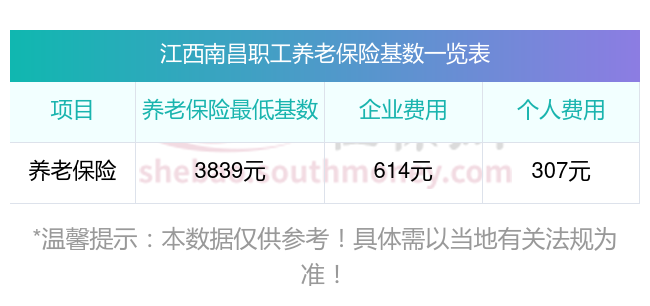根据有关法规,江西南昌企业职工基本养老保险缴费基数暂按不低于3839元;