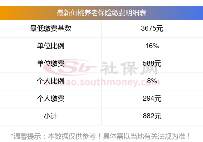 个人缴费金额:294元,单位缴费金额:588元,每月合计缴费:882元。