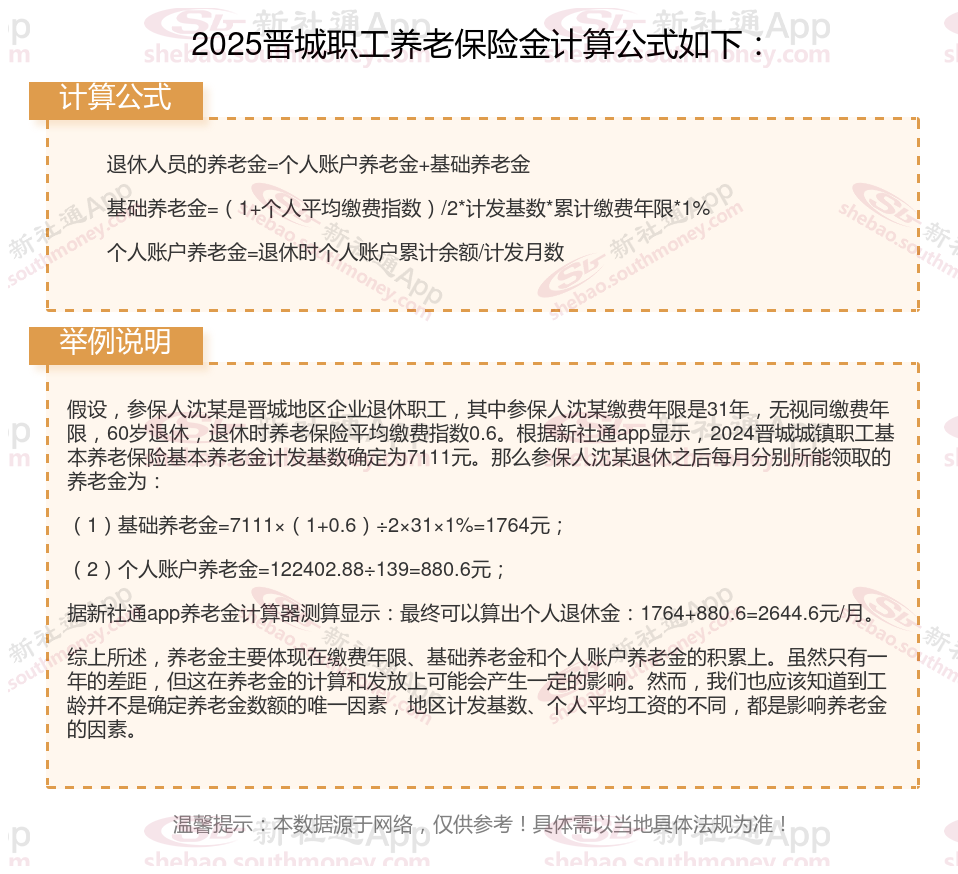 晋城养老金计算公式2024年计算方法(在线计算器)