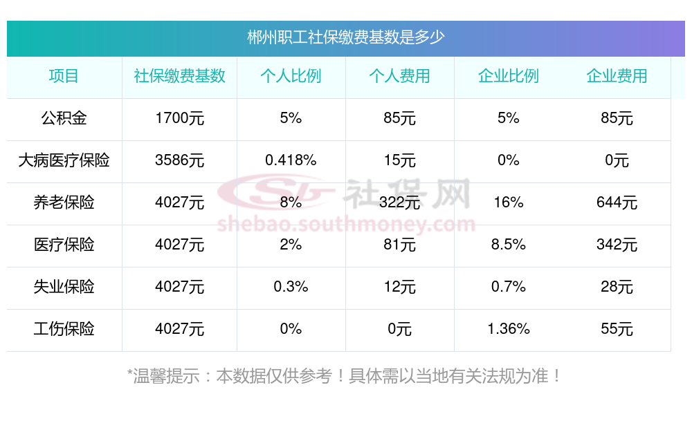 郴州社保缴纳情况是怎样的?一起和社保君一起来看看下面的明细表: